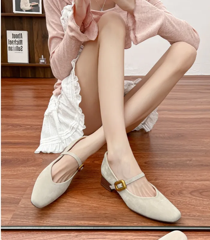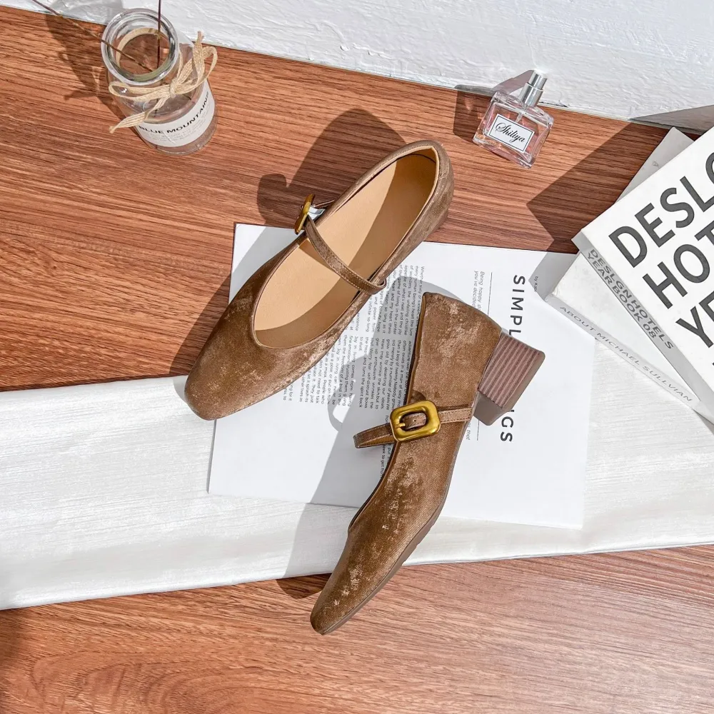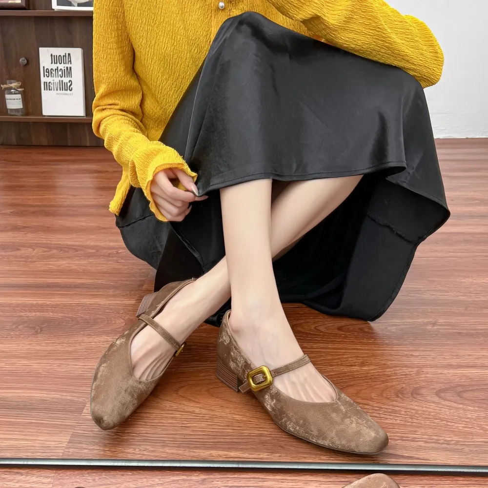 France style autumn high-heeled shoes retro low shoes