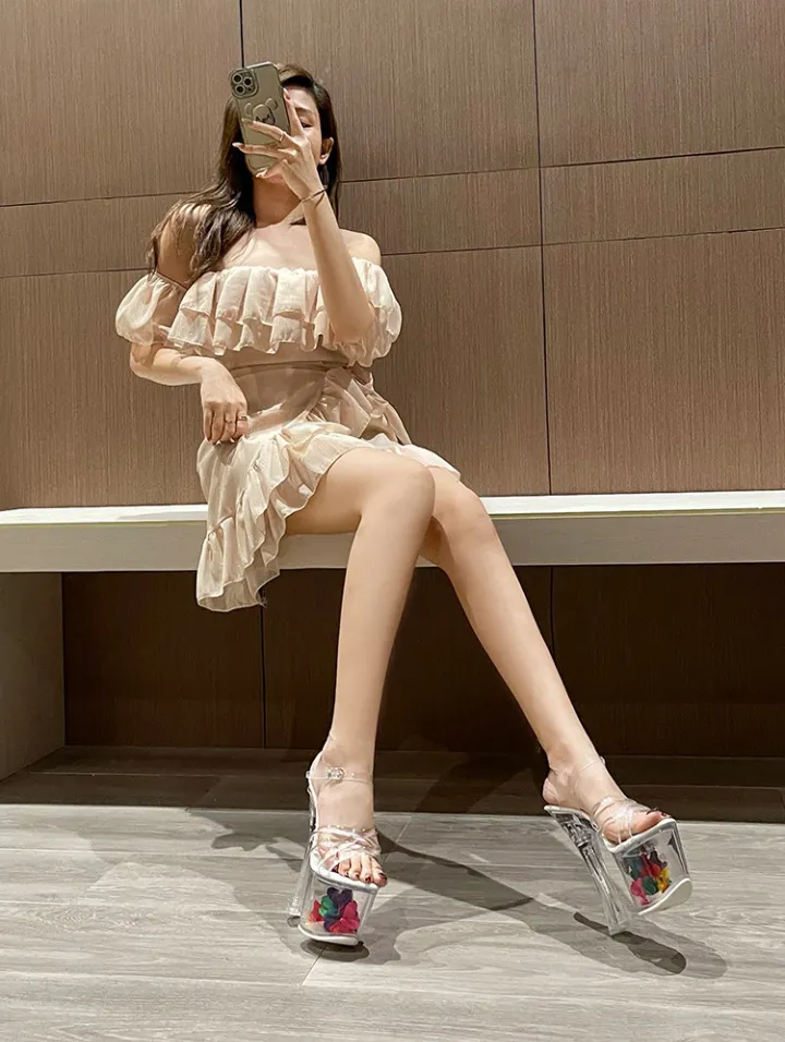 Very high metal buckles platform colors sandals